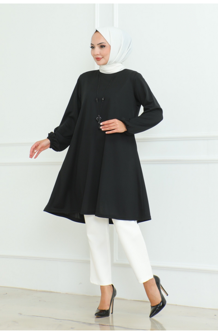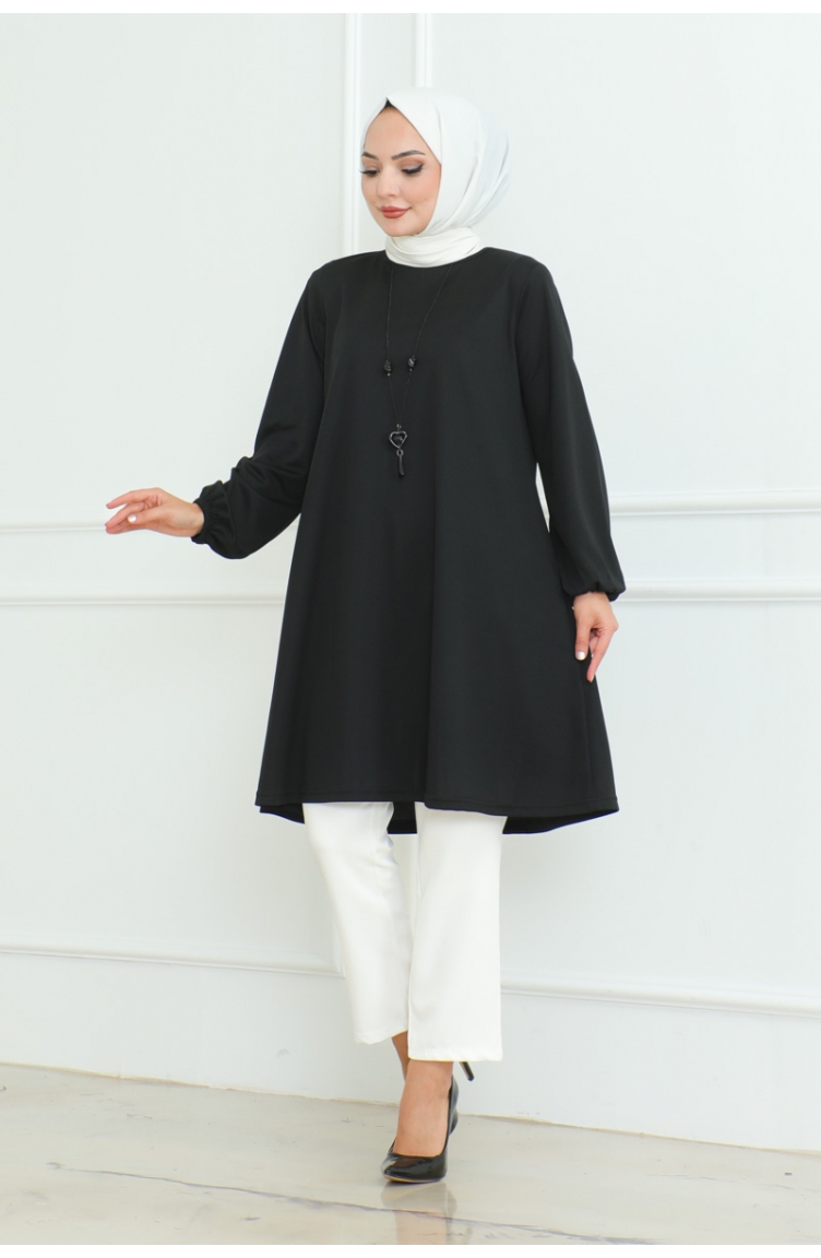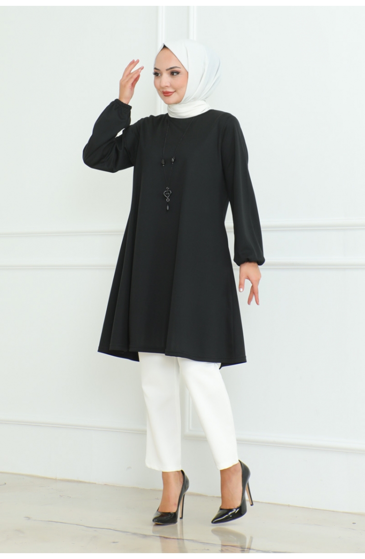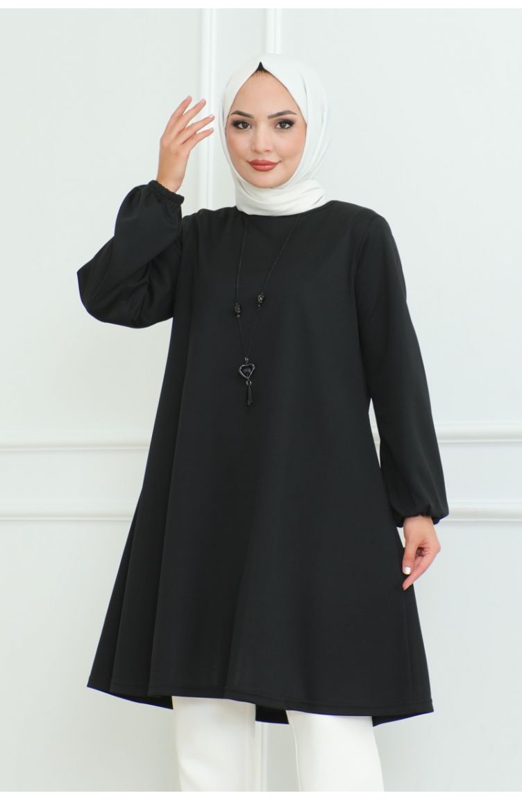 Oversize Krep Tunik 43-02 Siyah